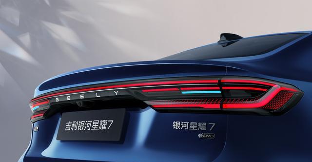从侧面我们能够看得出来车身姿态极为修长,而且还有着19英寸的轮毂,你敢相信这款吉利银河星耀7的车长快接近5米了吗?长宽高分别为4958/1915/1505mm,轴距是2852mm。尾部质感是很明显的,不仅层次鲜明,而且贯穿样式的尾灯,熏黑样式的造型,以及贯穿式的镀铬金属,气场确实强大。