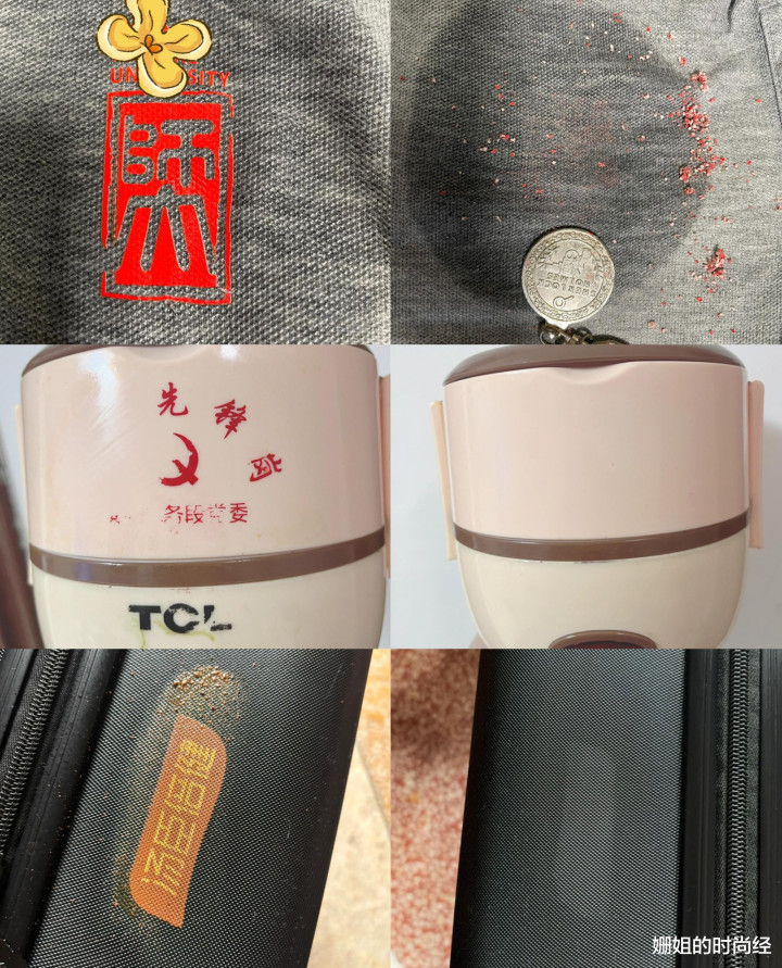 除此之外,一些带广告logo的赠品、过时的印花物品,都可以用风油精来去除,不管是塑料、面料上都可以用。