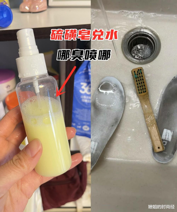 用硫磺皂清洗这些物品,或者直接用硫磺皂兑水,自制的去味喷雾秒杀市面上死贵的除味剂,淡淡的硫磺味也很清爽。