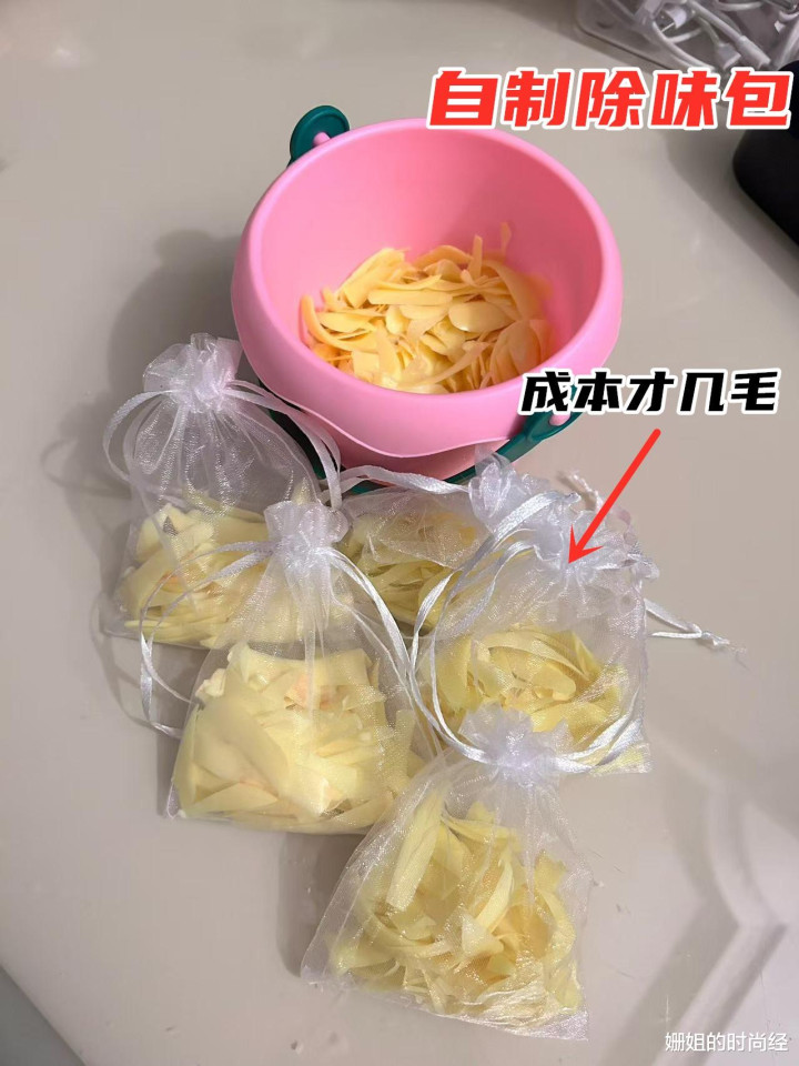在容易有异味的鞋柜、衣柜,也可以用硫磺皂切碎自制成除味包,不仅价格便宜,而且祛味能力超强,简直是去污除味界的“扛把子”!