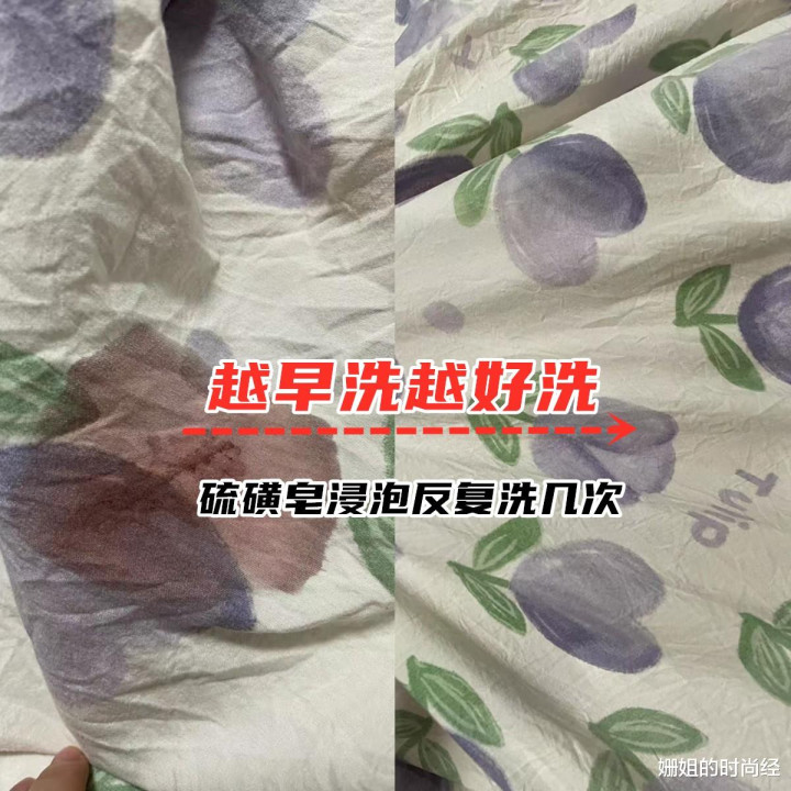 硫磺皂对付蛋白质类污渍的能力,实在是太强大了。越早清洗越好去处,成年污渍多浸泡和多搓洗几次也基本都能洗干净。